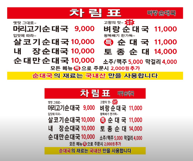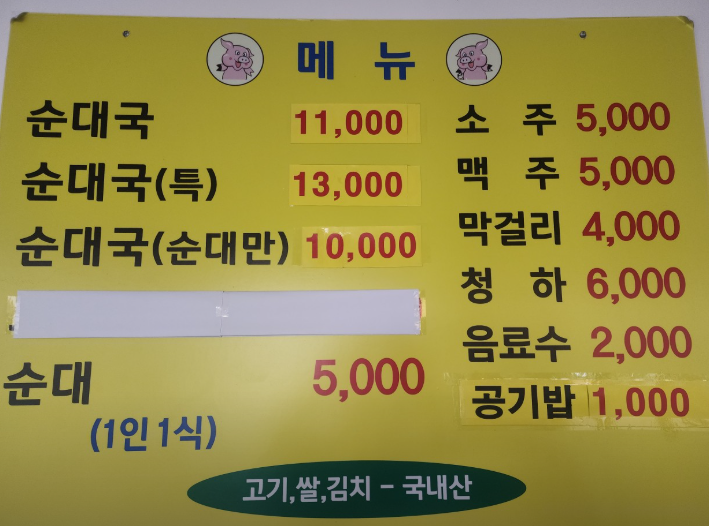 *대표메뉴 순대국 (11,000원)
